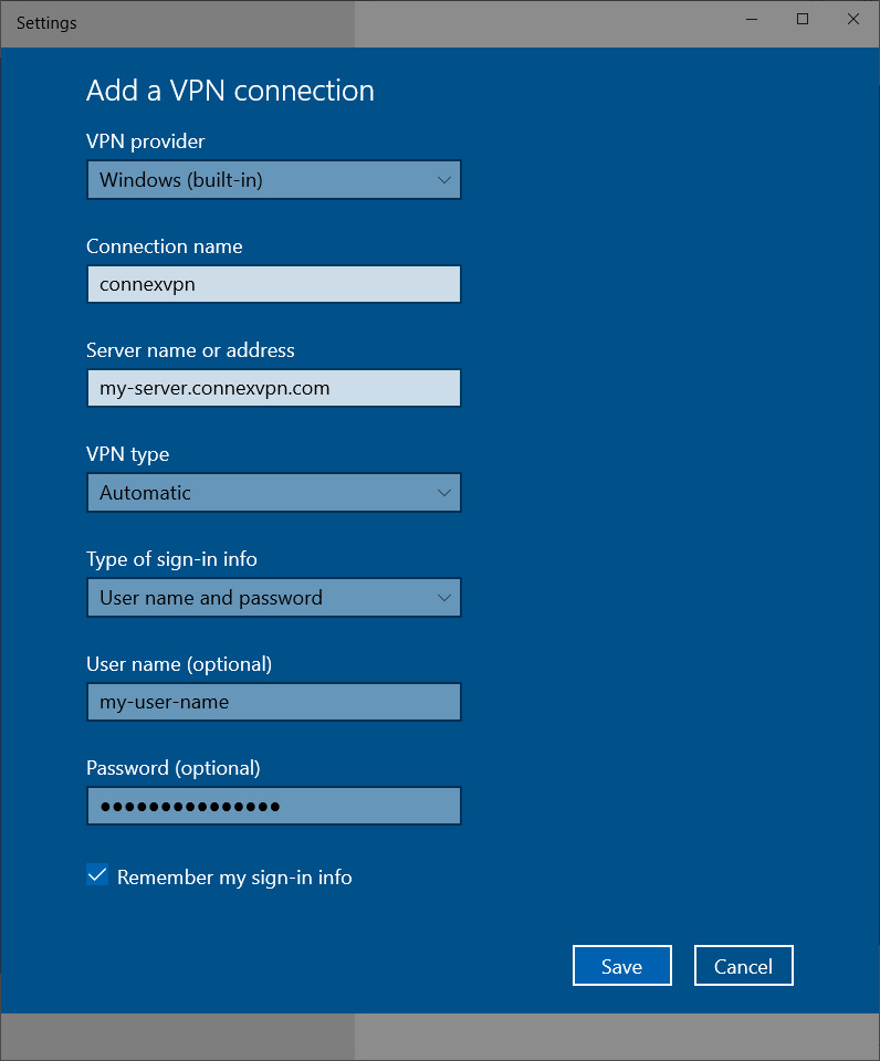 add the connection name, eg: my-vpn.connexvpn.com or the ip address